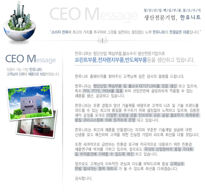ÇÑÀ¯´ÏÆ®´Â ÷´Ü»ê¾÷ÀÇ ÇٽɺÎǰ,ºÒ¼Ò¼öÁö(Teflon) Àü¹® »ý»ê¾÷ü ÀÔ´Ï´Ù!